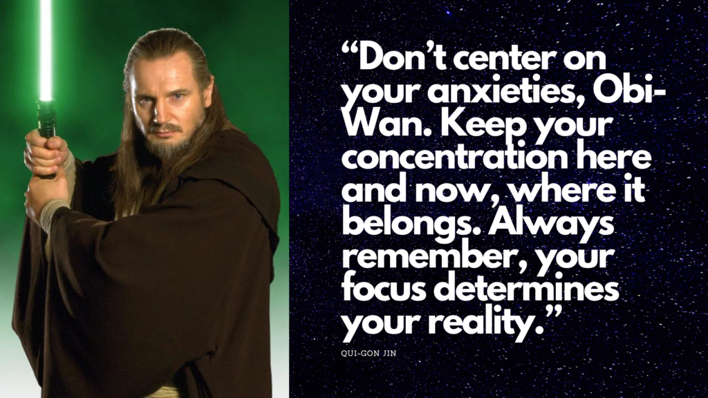 “Don’t center on your anxieties, Obi-Wan. Keep your concentration here and now, where it belongs. Always remember, your focus determines your reality.” ~ Qui-Gon Jinn