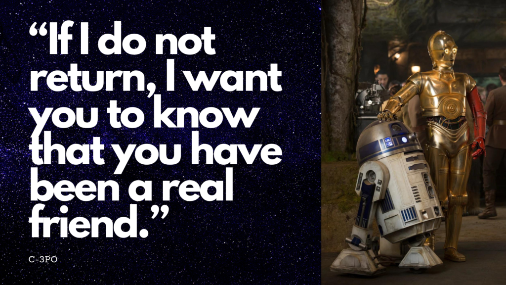 “If I do not return, I want you to know that you have been a real friend.” ~ C-3PO