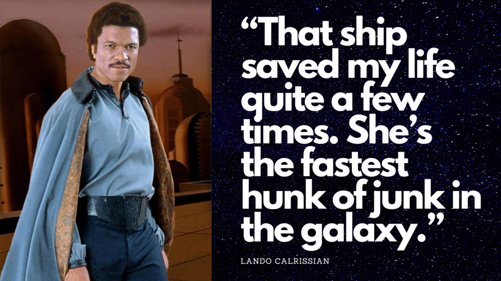 “That ship saved my life quite a few times. She’s the fastest hunk of junk in the galaxy.” ~ Lando Calrissian