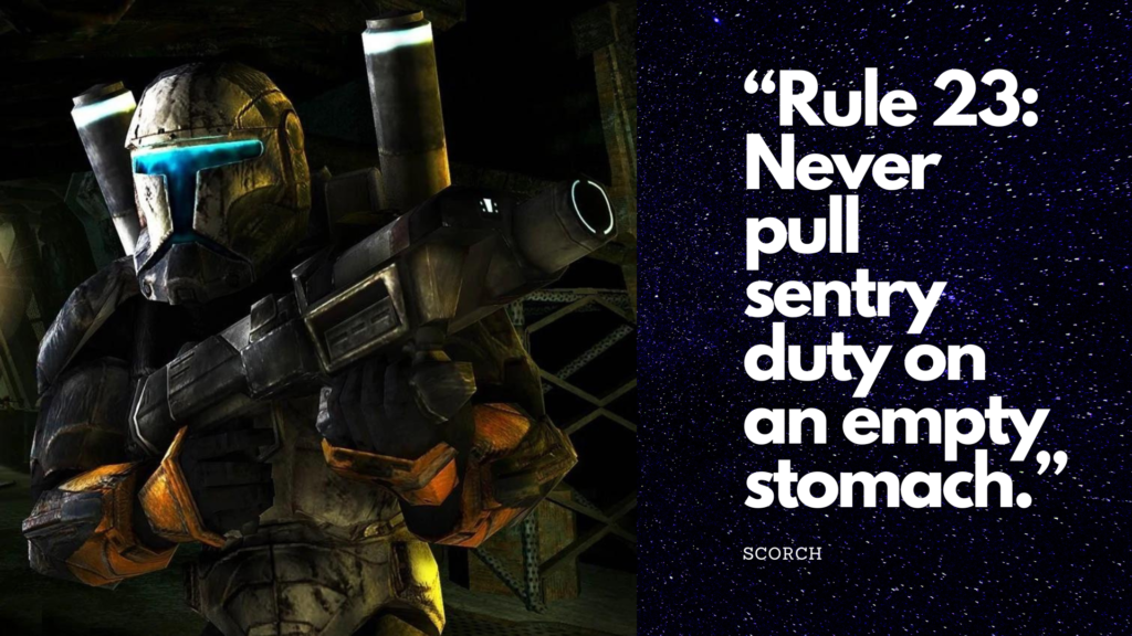 “Rule 23: Never pull sentry duty on an empty stomach.” ~ Scorch